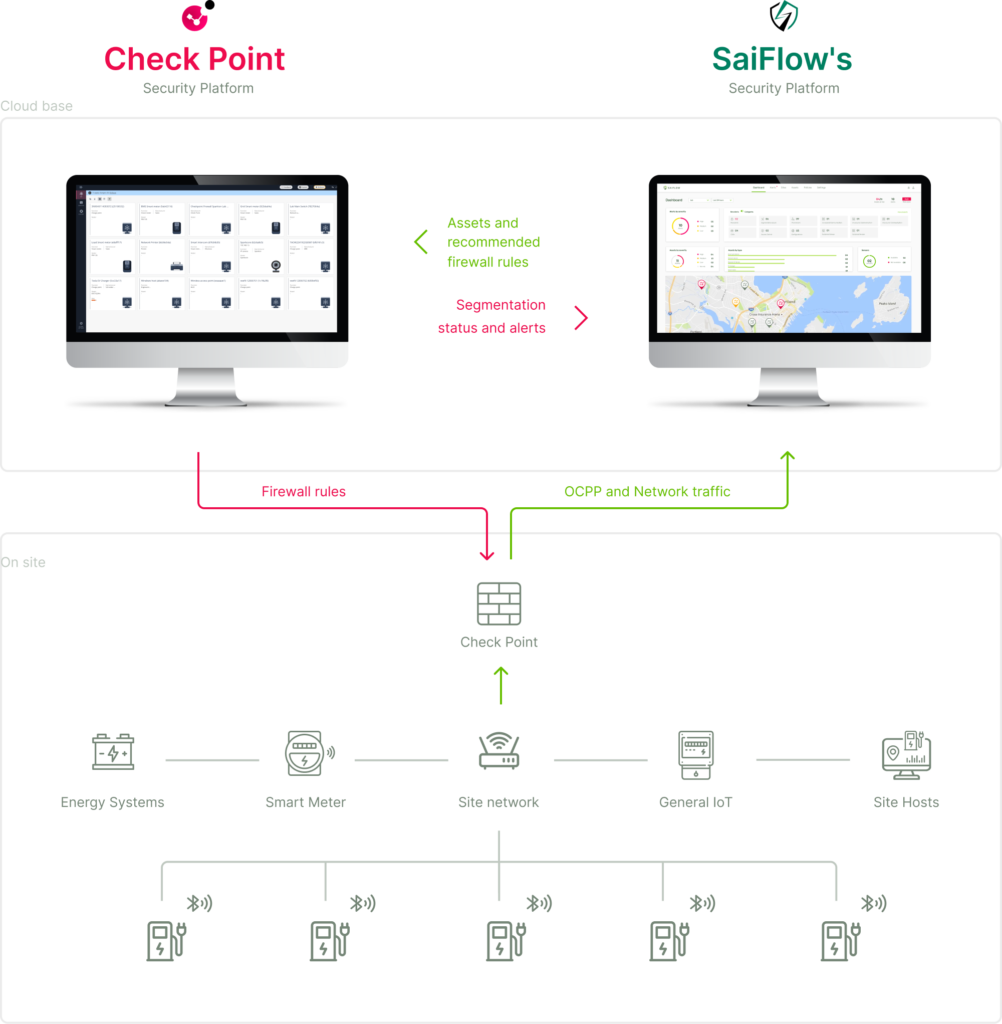 The integration of the SaiFlow and Check Point solutions provides distributed energy and EV charging sites with the following enhanced protections: